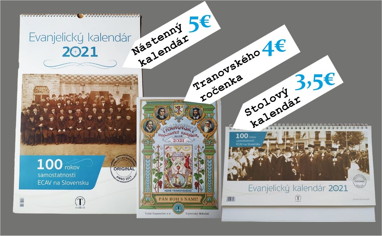 – Tranovského evanjelický kalendár – ročenka – zaujímavé čítanie na viac ako 300 stranách 4 €.