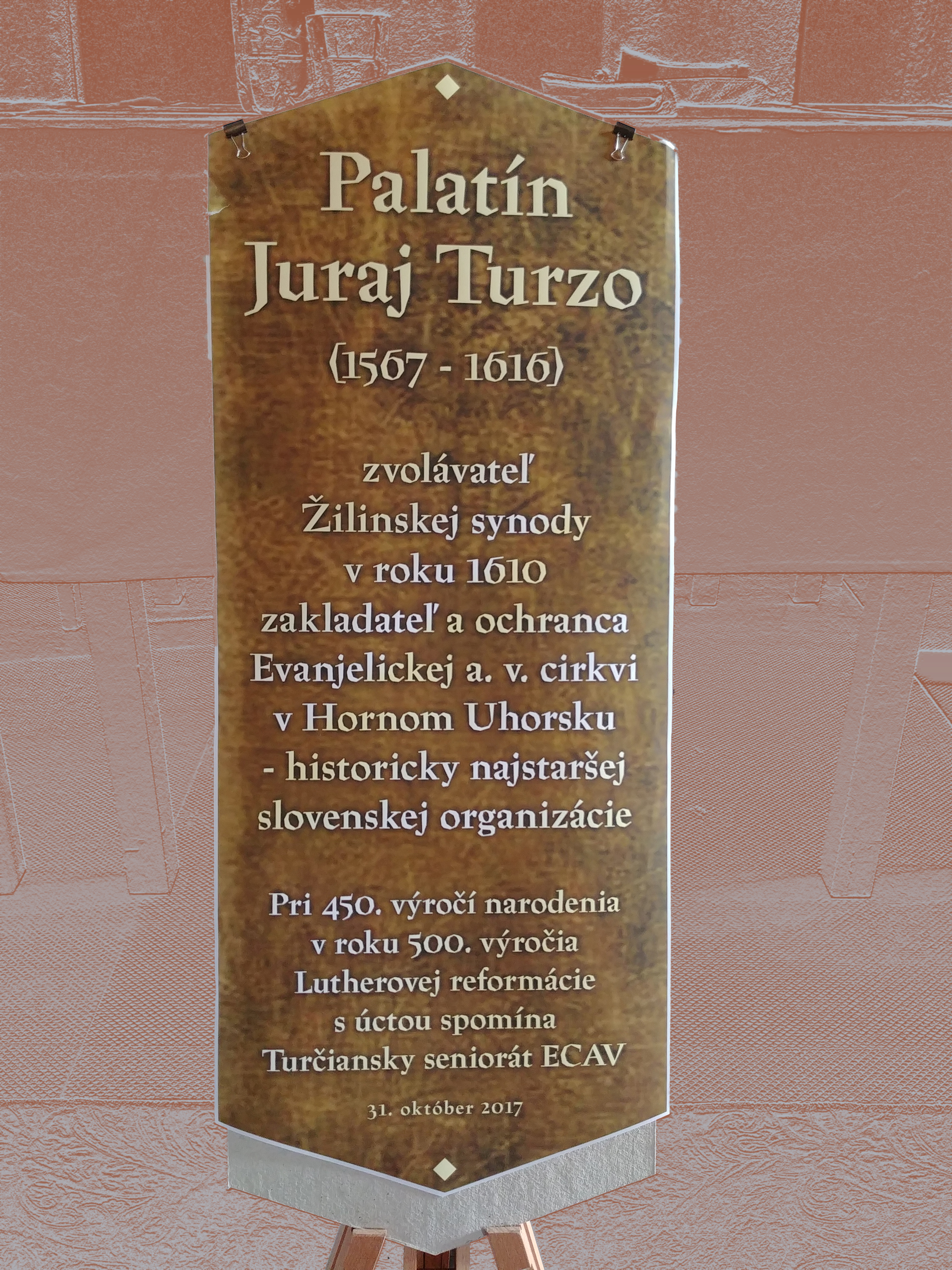Predsedníctvo nášho Turčianskeho seniorátu ECAV na Slovensku srdečne pozýva na odhalenie pamätnej tabule palatínovi Jurajovi Turzovi dňa 4.11.2018 o 17.00 hod. v sobášnom paláci v Bytči.