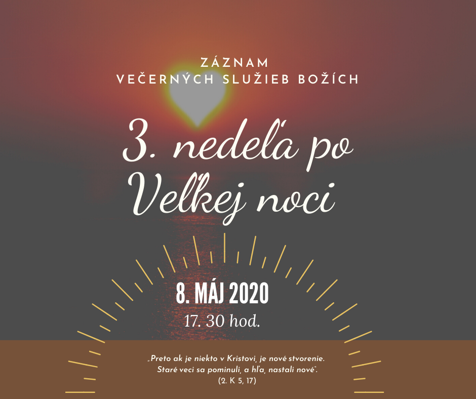 Vážení členovia nášho zboru, na základe dohody predsedníctva nášho zboru a súhlasného stanoviska našich zborových presbyterov sa pripravujú aj na nedeľu, dňa 17. mája 2020 dvoje služieb Božích.