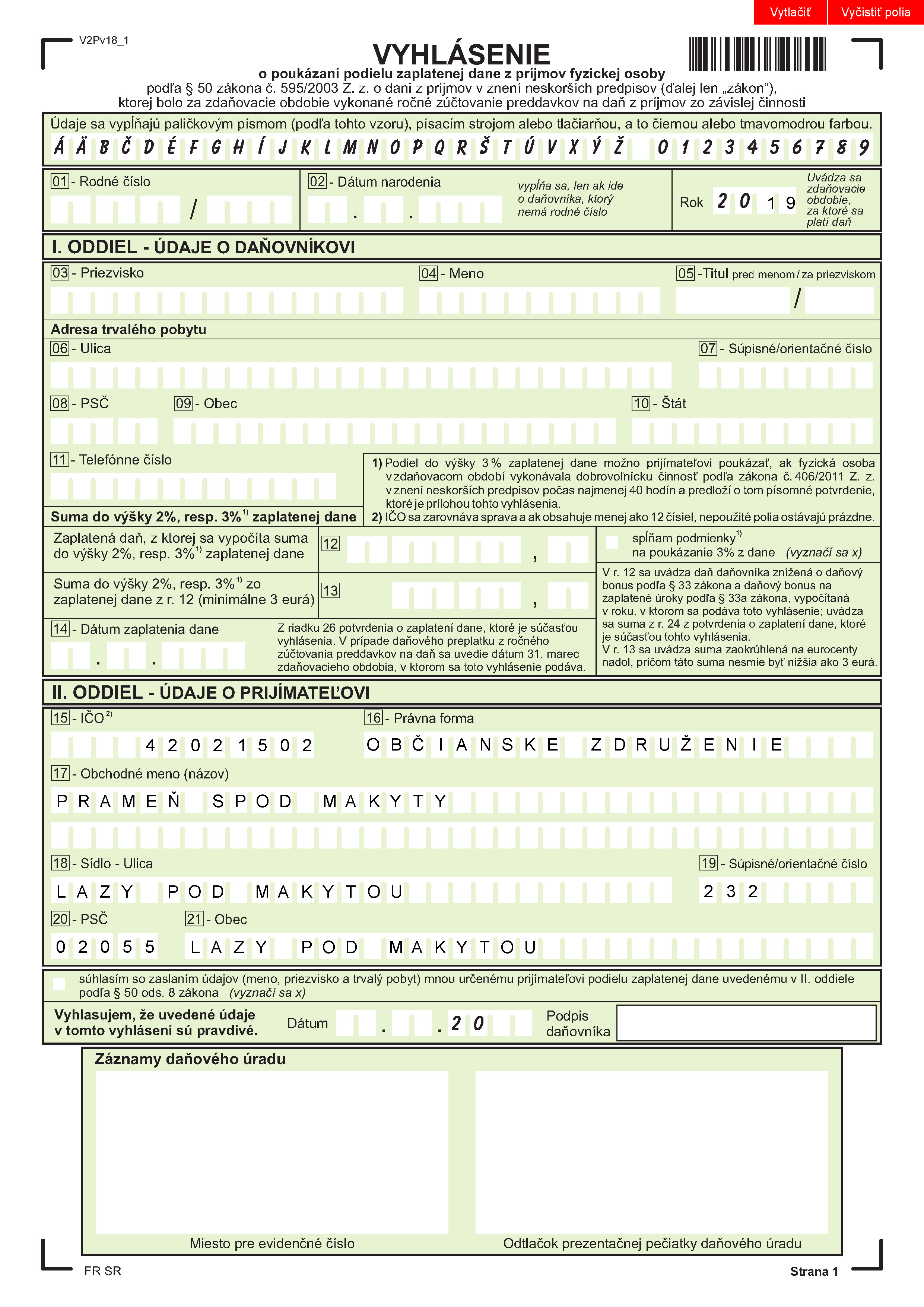 V čase od 09.45 hod. do 10.20 hod. pre členov zboru nad 65 rokov (a rizikové skupiny).