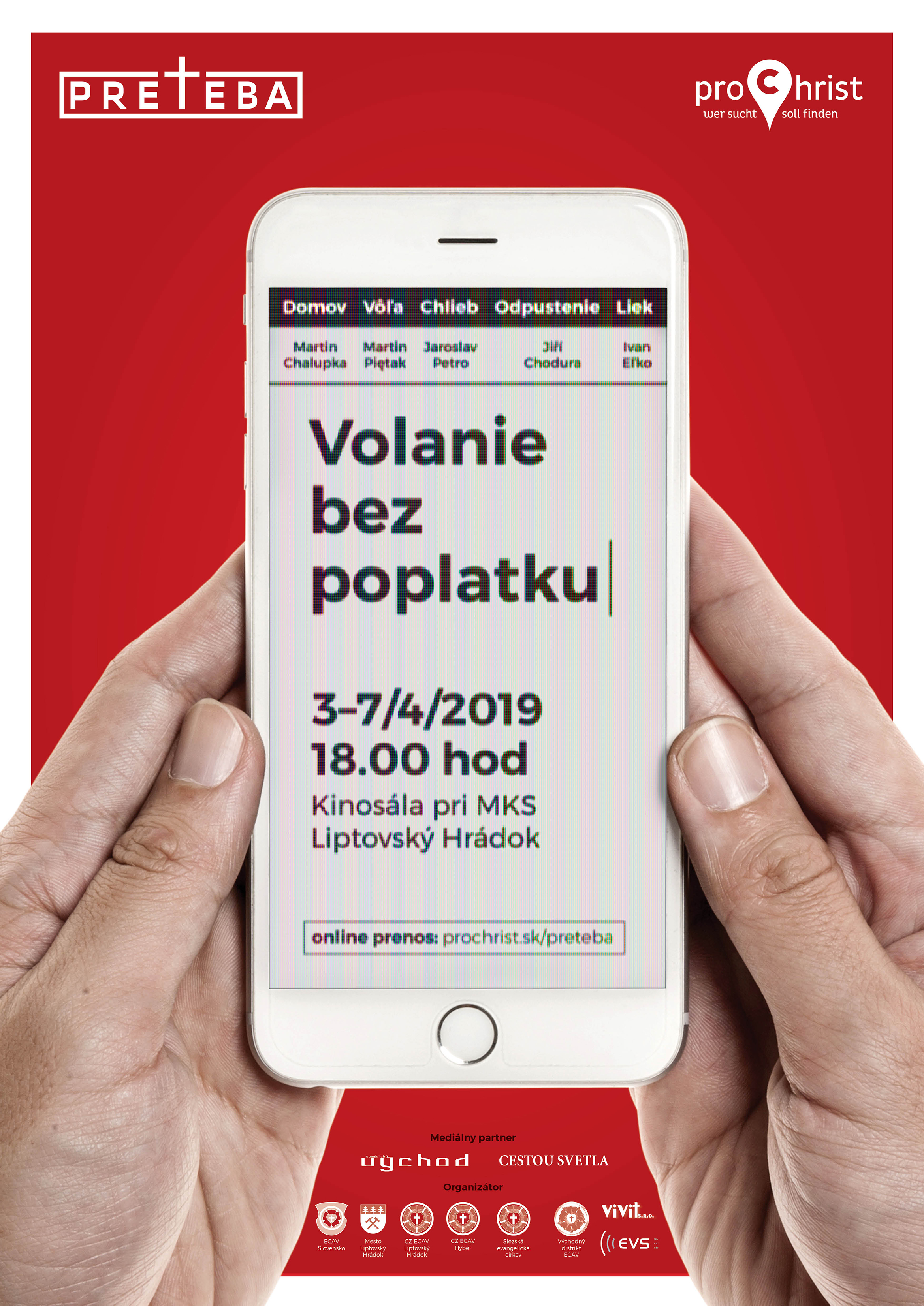 Od 3. – 7. apríla 2019 (streda – nedeľa) so začiatkom vždy o 18.00.hod. sa bude z Kultúrneho domu Liptovský Hrádok vysielať evanjelizačný projekt PRE TEBA 2019, ktorý pripravuje slovenský organizačný tím v partnerstve s organizáciou proChrist Nemecko a Sliezskou evanjelickou cirkvou.