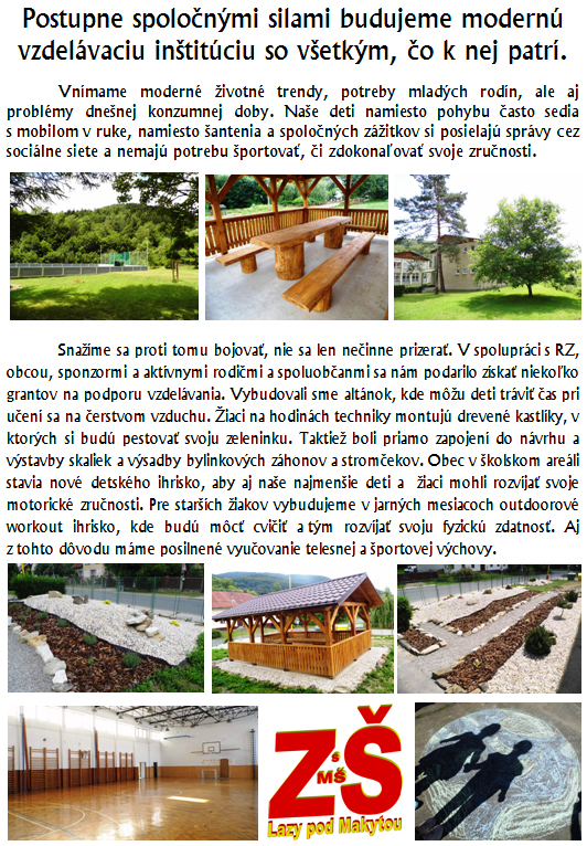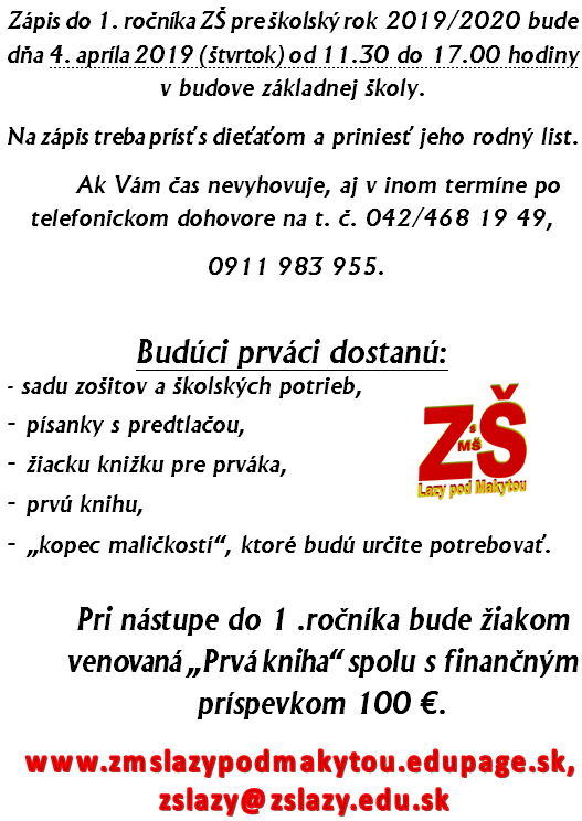 Zápis do 1. ročníka v ZŠ s MŠ Lazy pod Makytou